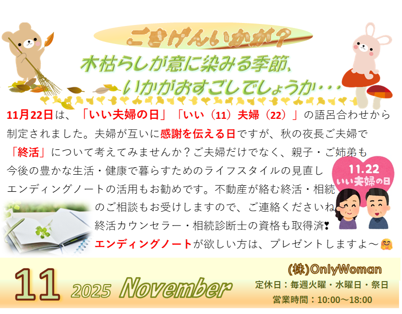 夫婦が互いに感謝を伝える日ですが、秋の夜長ご夫婦で「終活」について考えてみませんか?