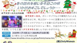 COLUMN 【12月】冬の訪れを感じる今日この頃いかがおすごしでしょうか? 木下大サーカス立川公演「世界三大サーカス」の一つ。100年以上の歴史を誇る木下大サーカス。 ポニーやゾウなどの動物たちによる曲芸をはじめ、地上13メートルに設置された大小5つのブランコでアクロバットを繰り広げる空中ブランコシ... 2025.12.05 COLUMN