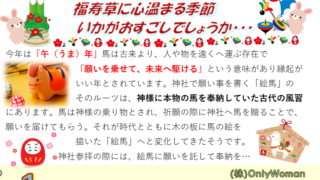 COLUMN 【1月】福寿草に心温まる季節 いかがおすごしでしょうか? 今年は「午(うま)年」馬は古来より、人や物を遠くへ運ぶ存在で「願いを乗せて、未来へ駆ける」という意味があり縁起がいい年とされています。 神社で願い事を書く「絵馬」のそのルーツは、神様に本物の馬を奉納していた古代の風習にありま... 2026.01.05 COLUMN
